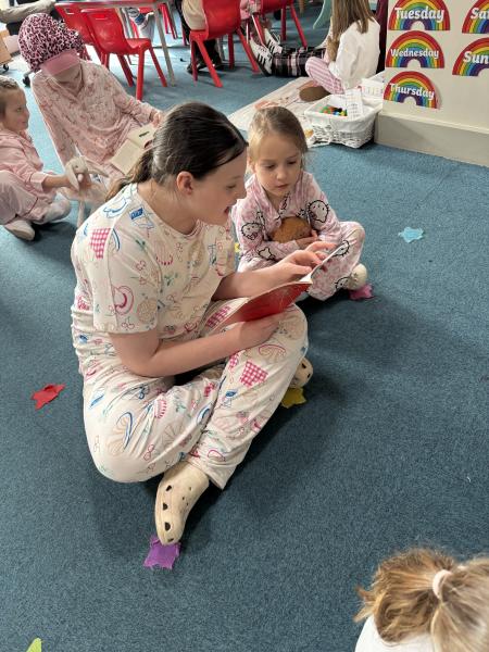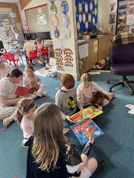 We celebrated with a cosy reading theme: ‘Snuggle Up With a Good Book’. Children came to school wearing their pyjamas and any appropriate snuggly items e.g. a dressing gown, blanket or a favourite teddy etc.